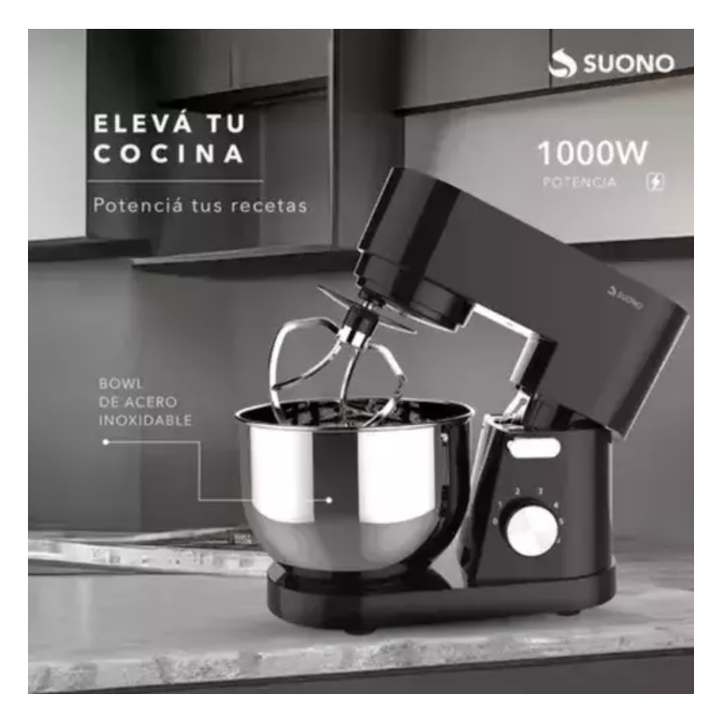 Observa todo lo que puedes hacer con tu nuevo BATIDORA DE PIE SUONO PLANETARIA 4.5L 1000W ACERO INOXIDABLE. Haz clic para ver todas las carácterísticas. Consúltanos si tienes dudas.