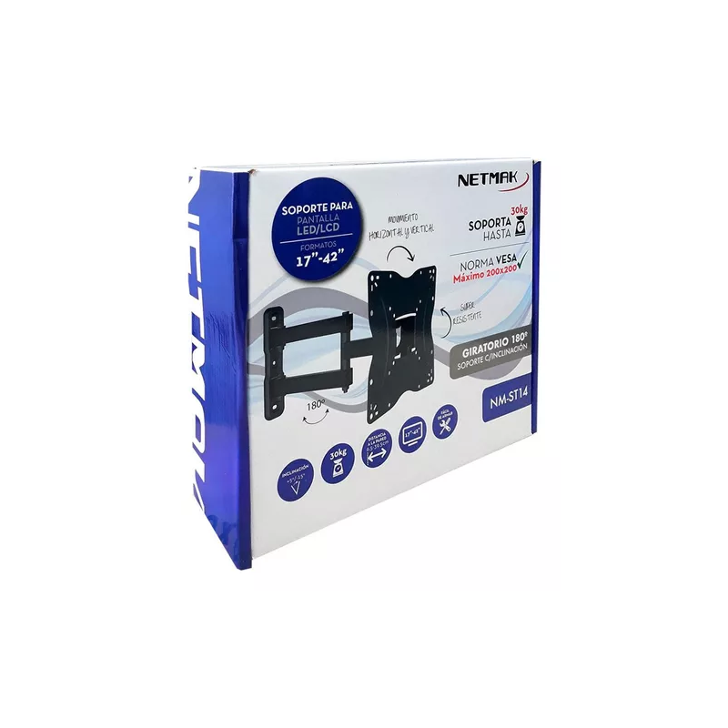 SOPORTE P/TV NETMAK DE 17" A 42" HASTA 30KG C/DOBLE BRAZO MOVIL NM-ST14